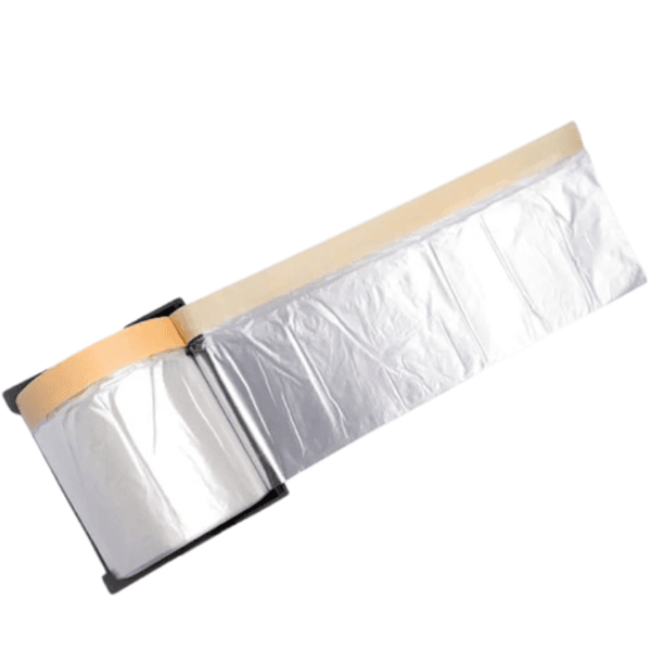 Folie de acoperire 2 în 1, 18 m², cu bandă adezivă pentru zugravi – cu dispenser reîncărcabil cu lamă